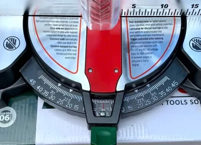 Máy cắt nhôm Dekton có ray trượt kẹp chắc chắn, có tấm chắn ABS bọc ngoài lưỡi cắt, thu gom và tránh mạt nhôm bắn ra ngoài.